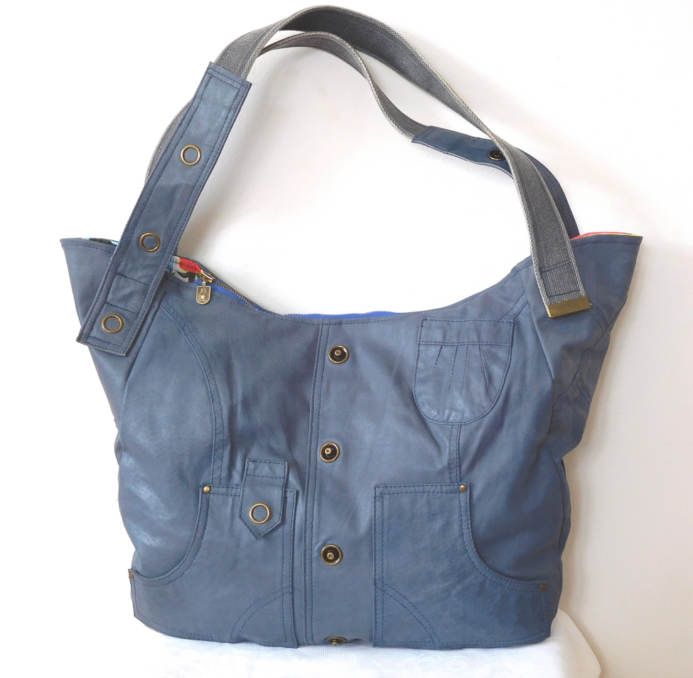 Denne taske er syet af en lille jakke. Skindet er ret kraftig og stift så den holder formen meget fint og bliver nok ikke slidt foreløbigt. 🙂