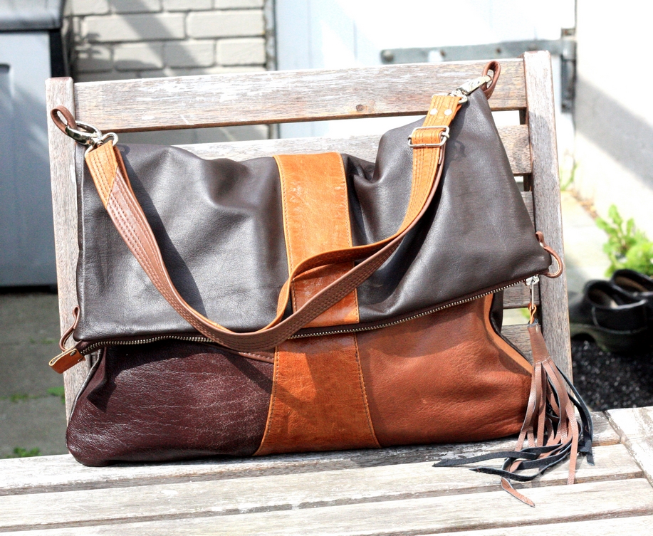 Lola har været undervejs længe. Jeg begyndte at sy den før sommerferien og min første tanke var at sy en city bag ud af de lækre, brune stykker skind. Men som med mange andre projekter, kunne jeg se noget andet for mig og skiftede mening 😀